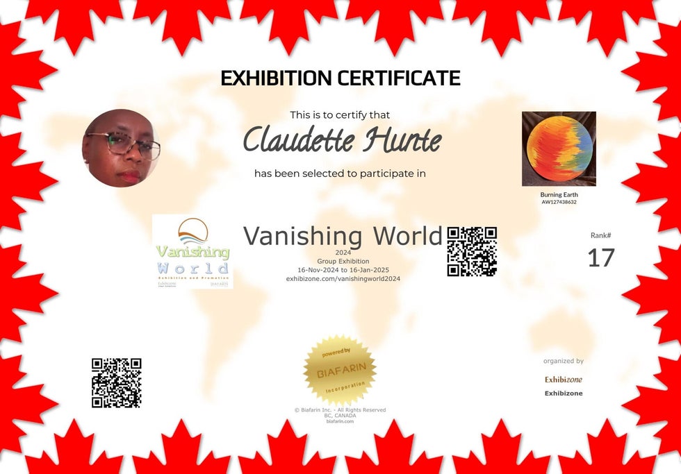 I'm honoured to be recognised as the Artist Call Winner 2024 of both the Vanishing World and Exposed competitions hosted by Exhibizone, a global platform dedicated to showcasing emerging and established artists. Presented by Biafarin.